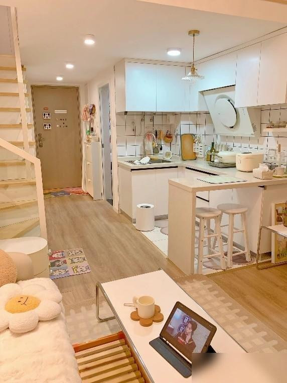 我们总抱怨“房子小没法活”,但其实好多空间都被“浪费”了——比如你家的楼梯底下是不是堆着杂物?玄关是不是只放了鞋架?厨房是不是还在浪费转角?这姑娘没买包没逛街,攒钱买小房子,却把“凑合过”过成了“讲究活”——她装的不是16㎡的小屋,是“把日子过成诗”的勇气。
