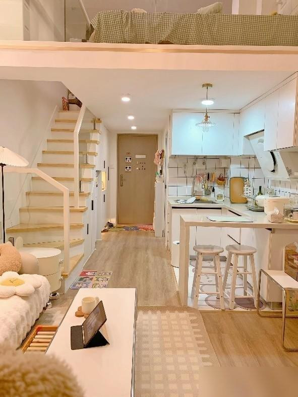 在香港这样“每寸地都要算钱”的地方,16㎡能装下什么?是堆得转不开身的杂物,还是连呼吸都觉得挤的逼仄?但有个姑娘偏不——她把16㎡改成了2房2厅,每一寸空间都像被“点了金”,连楼梯缝、玄关角都没放过,活成了“空间利用课代表”。